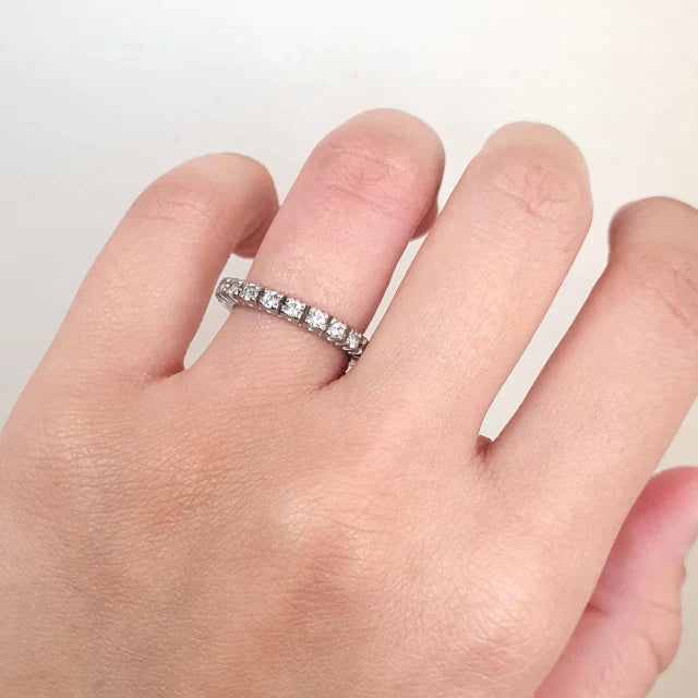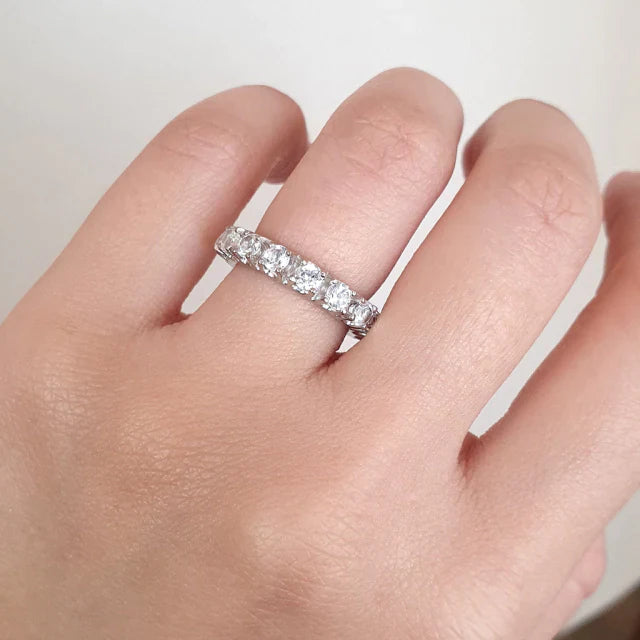 Anel em prata 925 aliança inteira com topázios incolores naturais