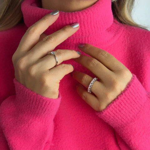 Anel em prata 925 com 8 pedras em zircônia fusion. Trata-se da fusão entre pedras naturais e cristais nobres, o que faz com que elas possuam um brilho diferenciado.