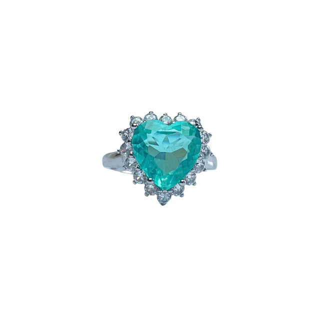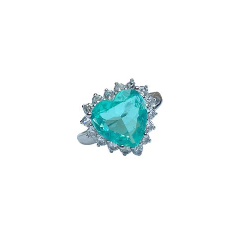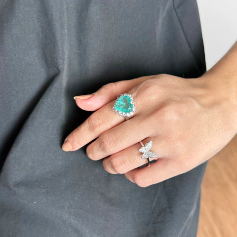Anel Prata 925 em formato coração pedra fusion com cravejação.