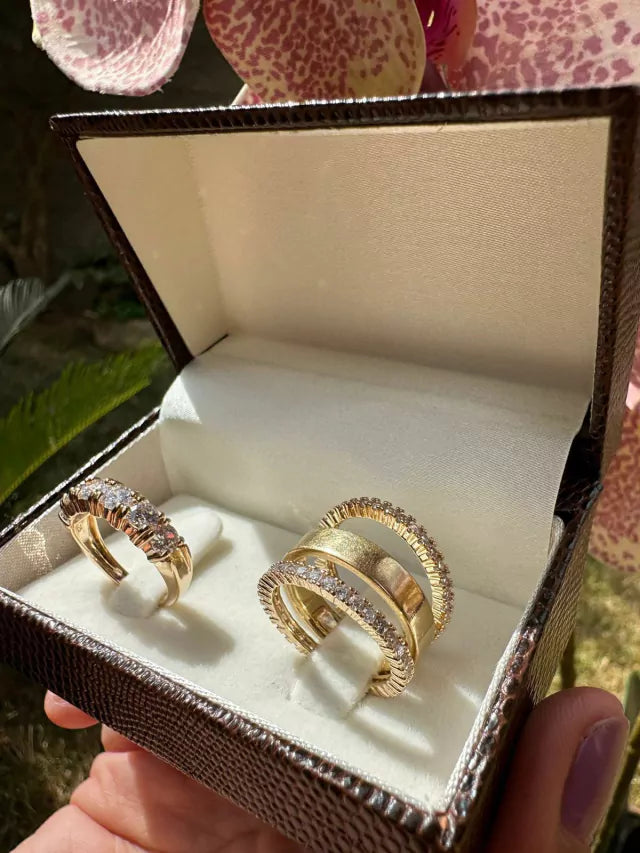 Prata 925 com banho de ouro amarelo.