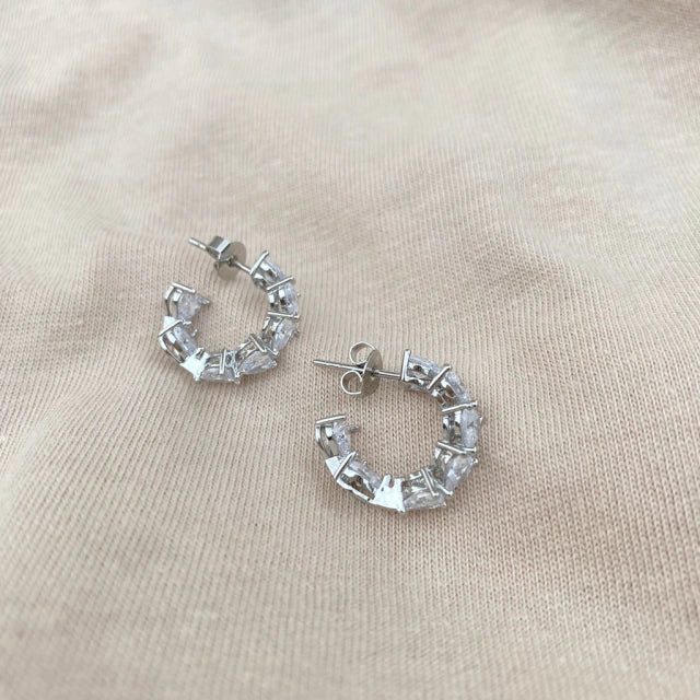 Brinco de argola cravejado com zircônia em forma de coração de 3mm e com banho de ródio.