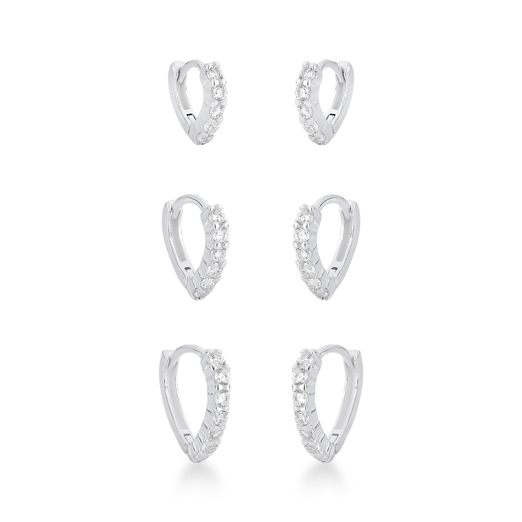 Trio de Argola Cravejado de Prata 925, vem com 3 peças lindas em forma de argola V composto de prata liso e prata com cravação preso por garras, com acabamento perfeito e vem com o fecho de encaixe, além de ser feito com um material de excelente qualidade e durabilidade.