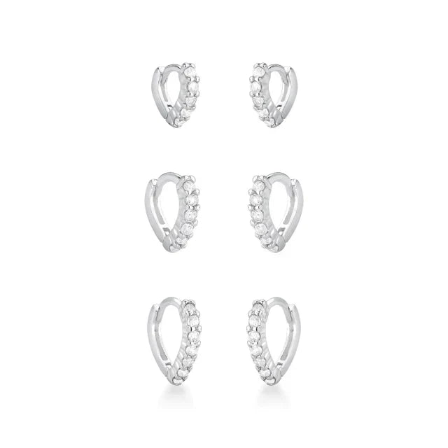 Trio Argola Cravejado de Prata 925, vem com 3 peças lindas, com acabamento perfeito e vem com o fecho de encaixe, além de ser feito com um material de excelente qualidade e durabilidade.