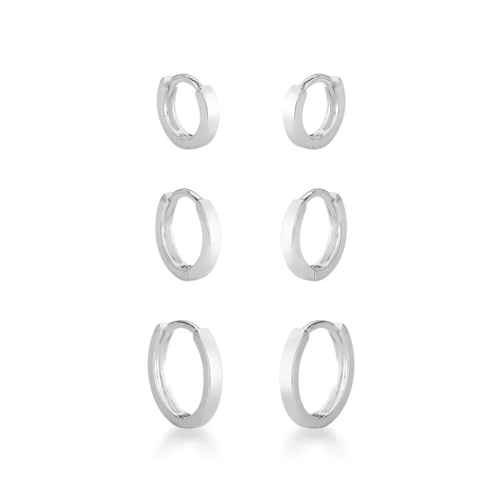 Trio Argola Liso Fio Quadrado de Prata 925, vem com 3 peças lindas, com acabamento perfeito e vem com o fecho de encaixe, além de ser feito com um material de excelente qualidade e durabilidade.