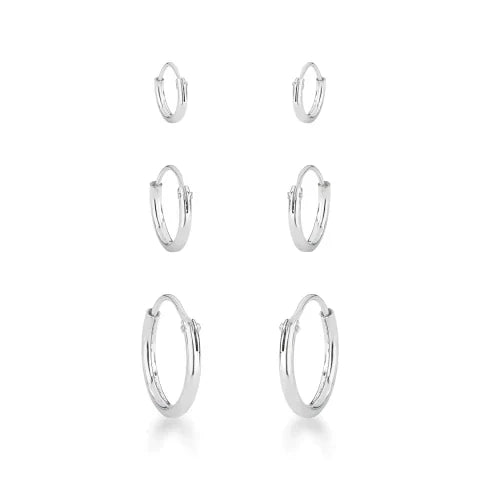 Trio Argola Rebitada de Prata 925, vem com 3 peças lindas, com acabamento perfeito e com 1,5mm de espessura, o modelo tamanho P apresenta 9 milímetros, o modelo M apresenta 11 milímetros e o modelo tamanho G apresenta 13 milímetros, vem com o fecho de encaixe, além de ser feito com um material de excelente qualidade e durabilidade.