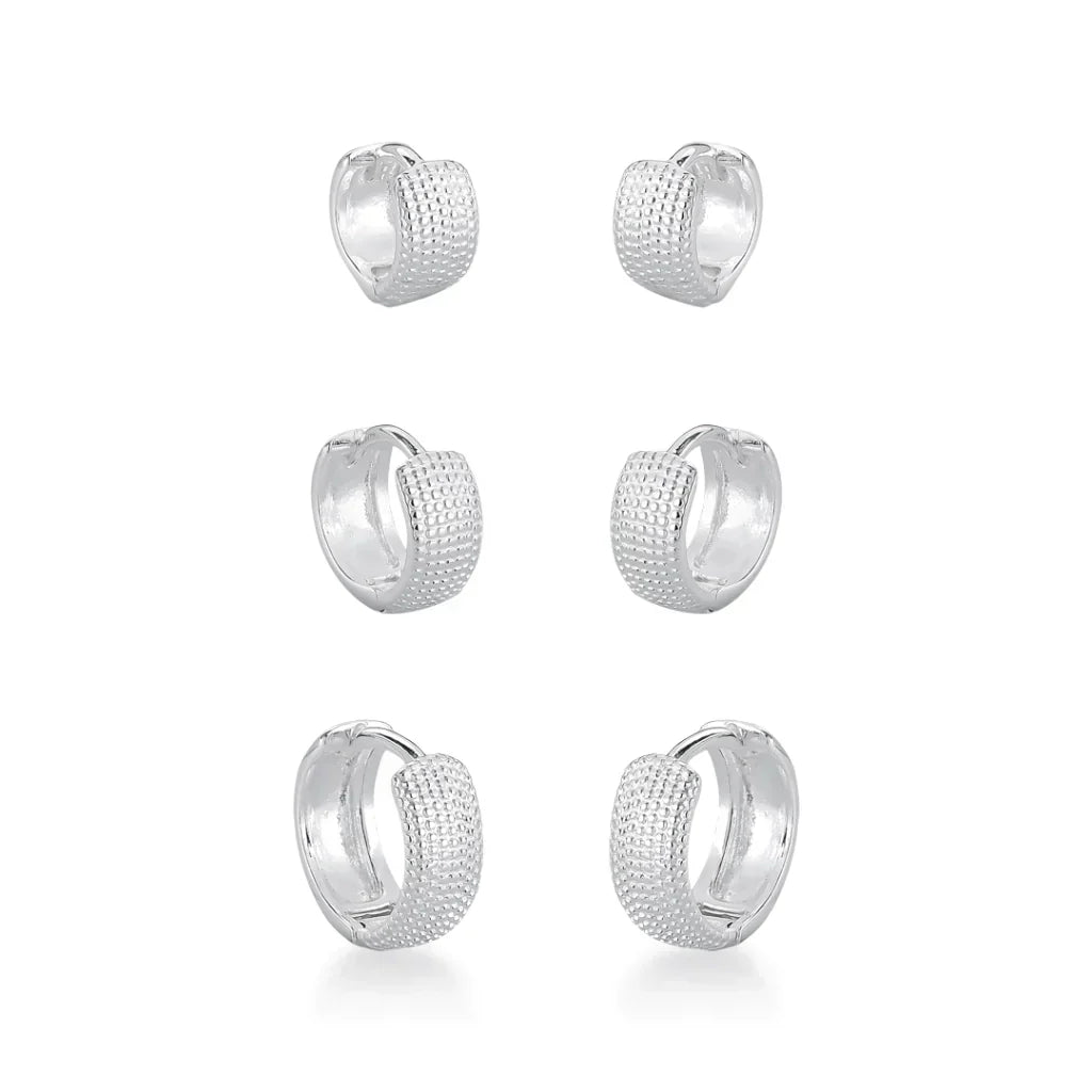 Trio de Brinco Argola Cravejadas de Prata 925, vem com 3 peças lindas, com acabamento perfeito e vem com o fecho de encaixe, além de ser feito com um material de excelente qualidade e durabilidade.
