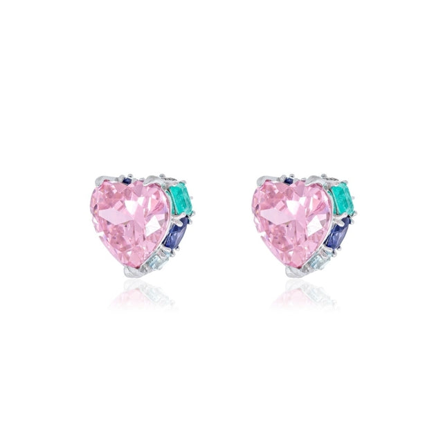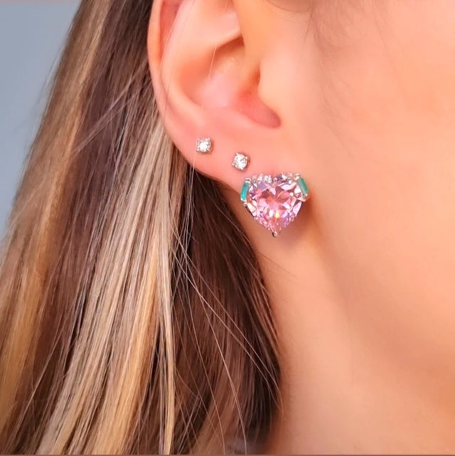 Brinco confeccionado em Prata 925 com banho de ródio, com zircônia central na cor safira rosa (1,1 cm).