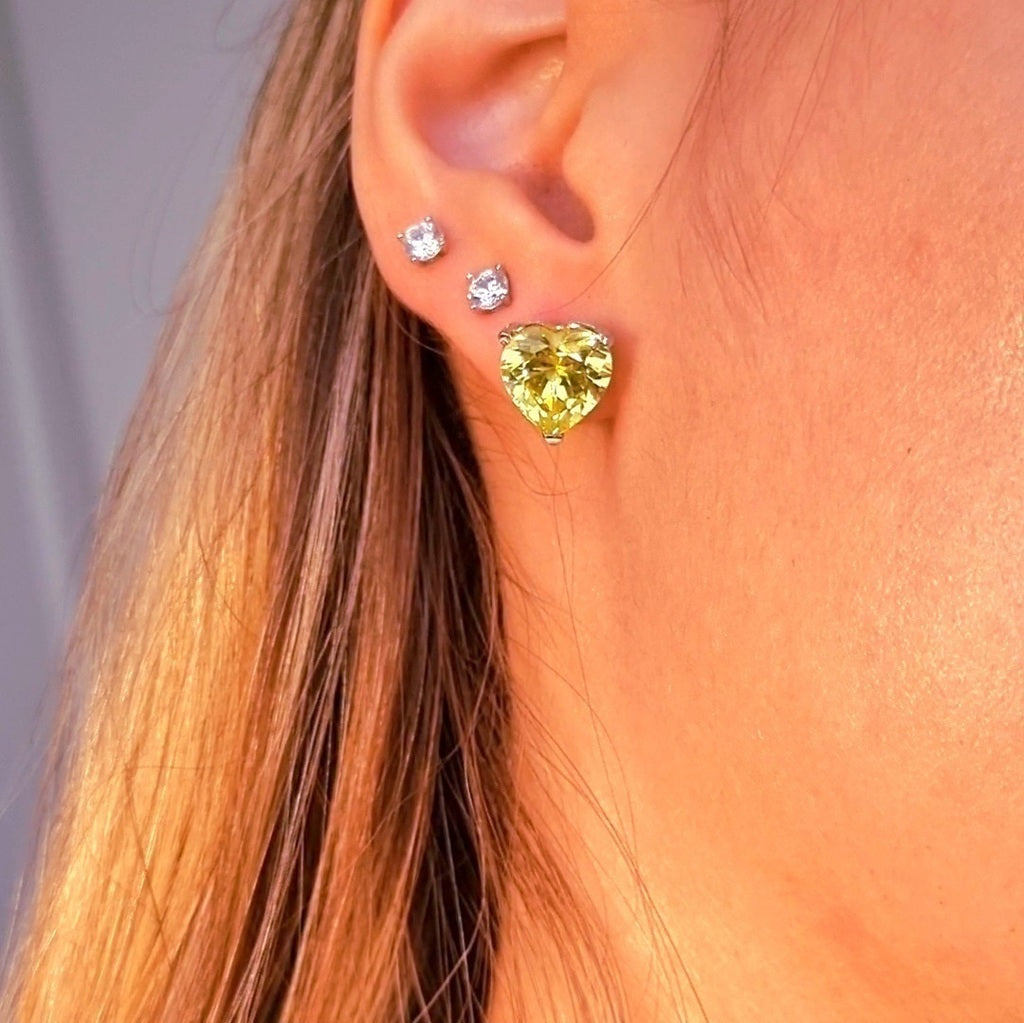 Essa peça é um clássico da joalheria mundial com toques de exclusividade que você só encontra na fabricação própria. Brinco em Prata 925 com banho de ródio em lapidação coração. Zircônia Yellow Fance.