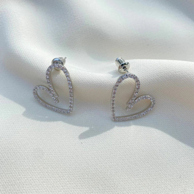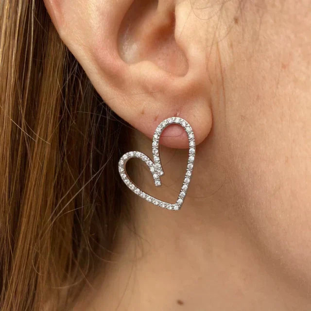 Brinco em forma de coração cravejado com micro zircônia e com banho de ródio.