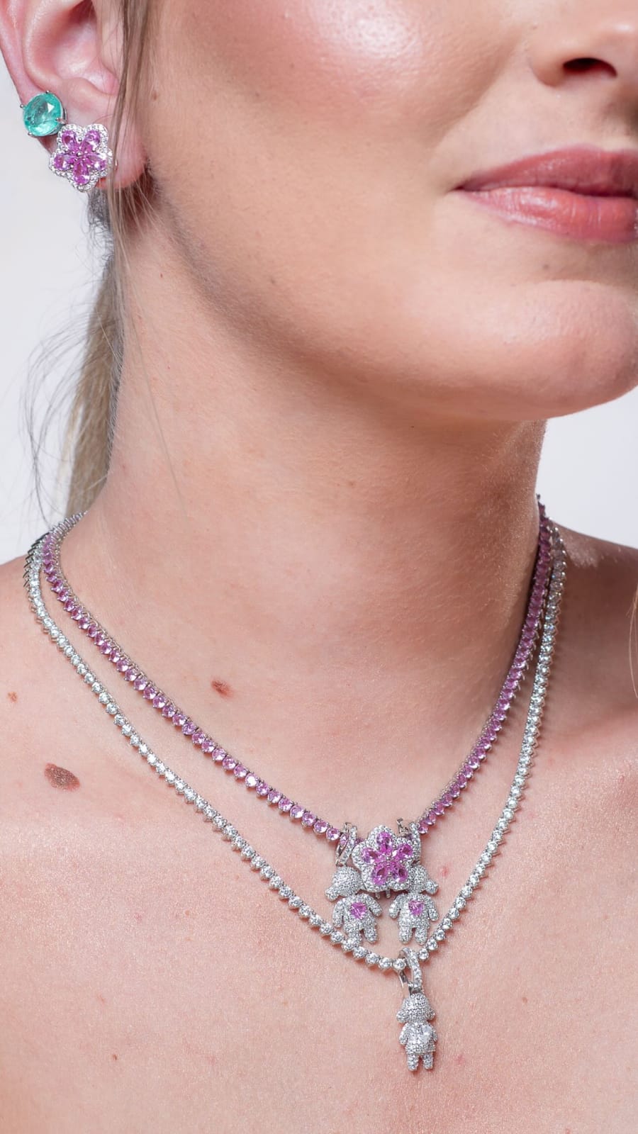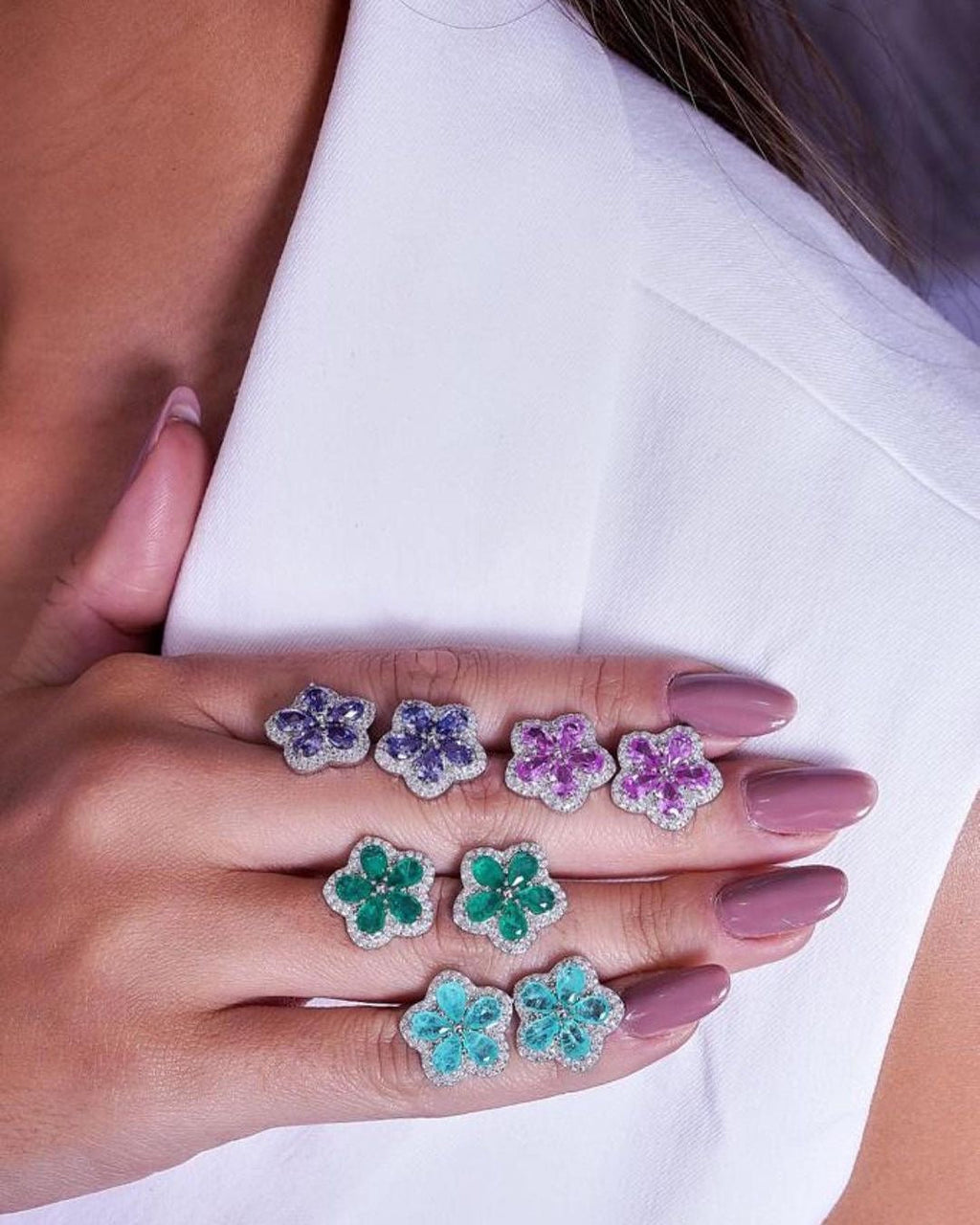 Brinco flor cravejado