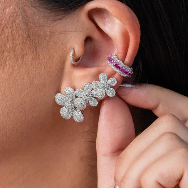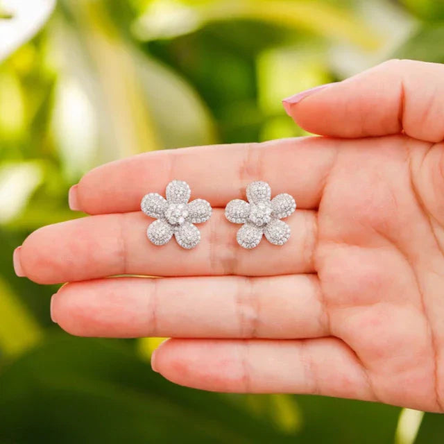 Brinco flor, micro cravado com zircônias naturais.