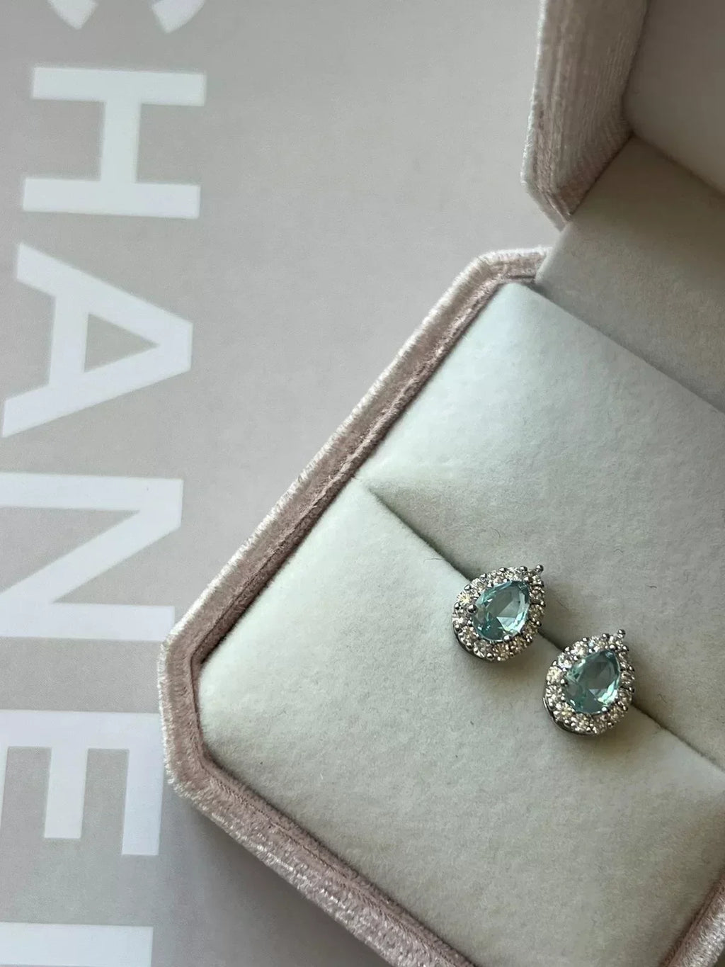 Brinco Gotinha com Zircônia Água-marinha e Cristal em Prata 925 de Ródio Branco