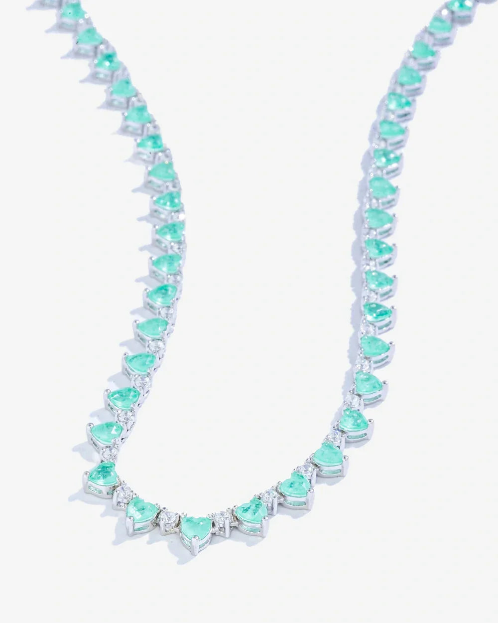 Confeccionada em Prata 925 e banho de Ródio Branco, a corrente de pedrarias do Colar Riviera Afrodite encanta por sua delicada composição, onde Zircônias na lapidação Coração vão sendo alternadas por pontos de Luz em Zircônias Cristais. Possui fecho Gaveta e trava de segurança. Sua estrutura de trama rígida, faz com que a corrente não vire, igual ao da alta joalheria.