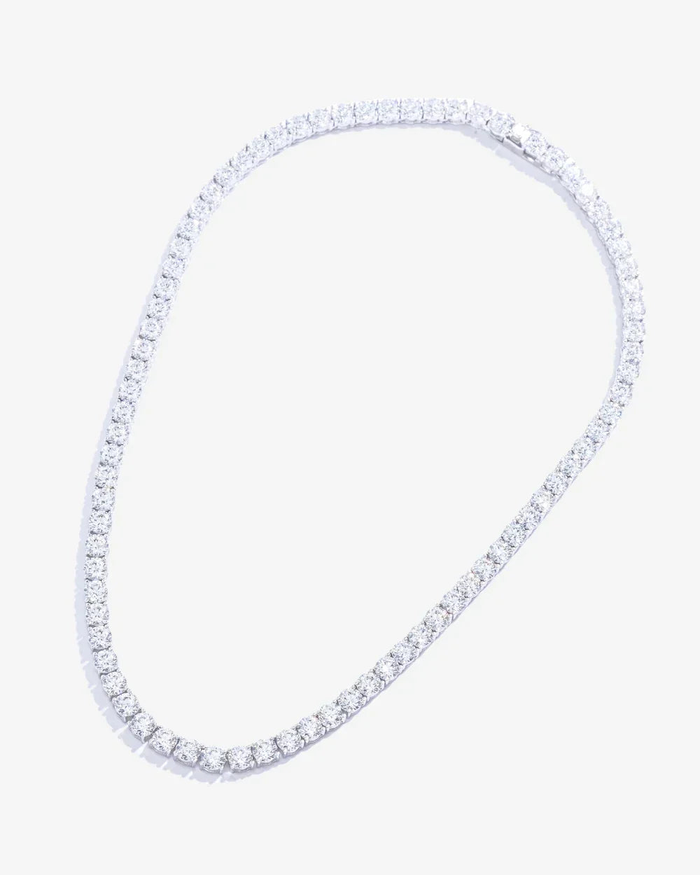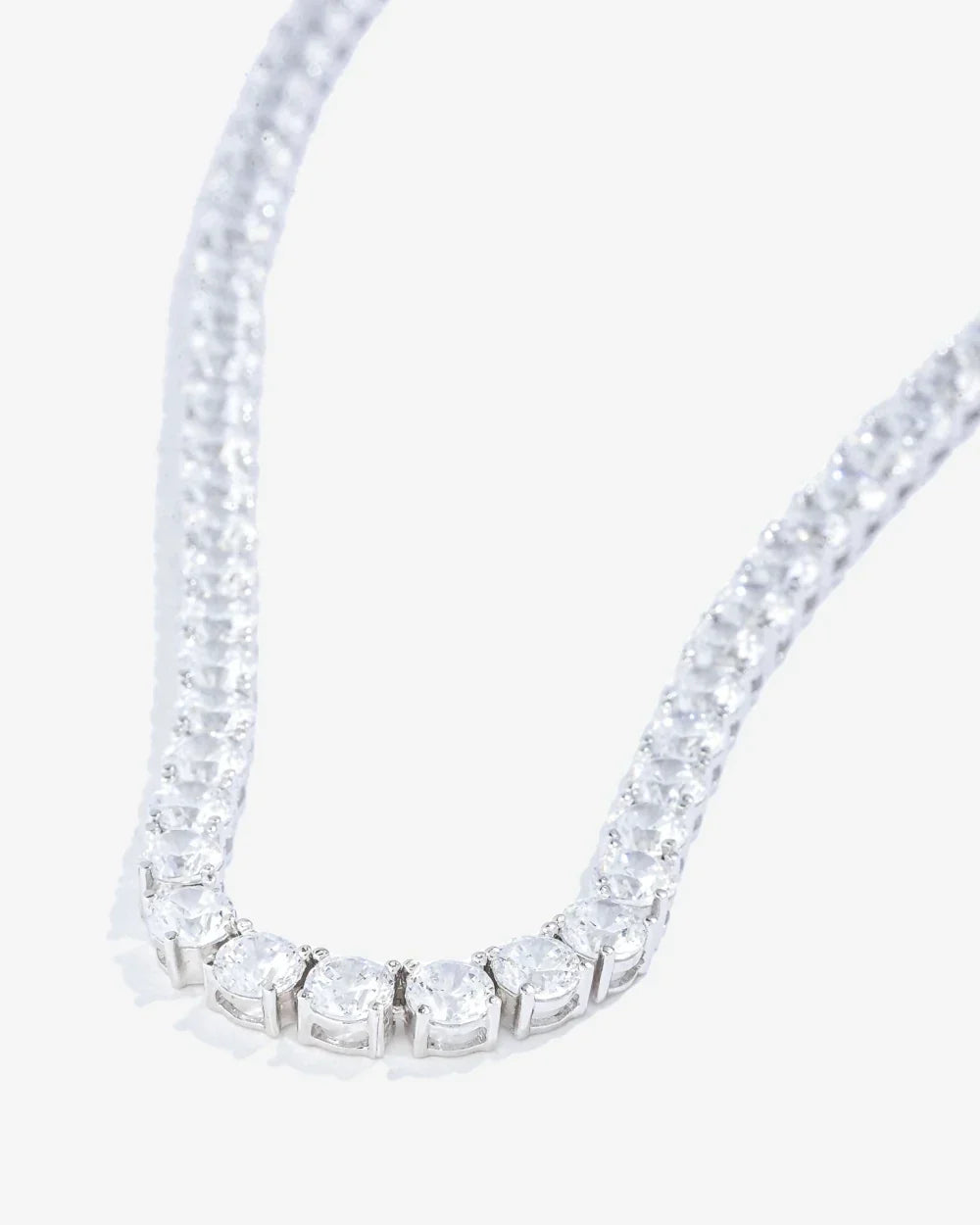 Colar volumoso modelo Riviera, em prata 925 com banho de Ródio Branco, corrente de trama rígida, em cravações em zircônias na lapidação brilhante. Sua estrutura tem a trama rígida, portanto não vira, exatamente igual a Riviera da alta joalheria.