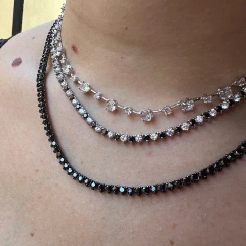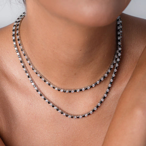 Riviera semijoia com banho de ródio branco, com pedras brancas e negras, intercaladas! Do luxo ao casual, e uma peça que consegue transmitir segurança e empoderamento!