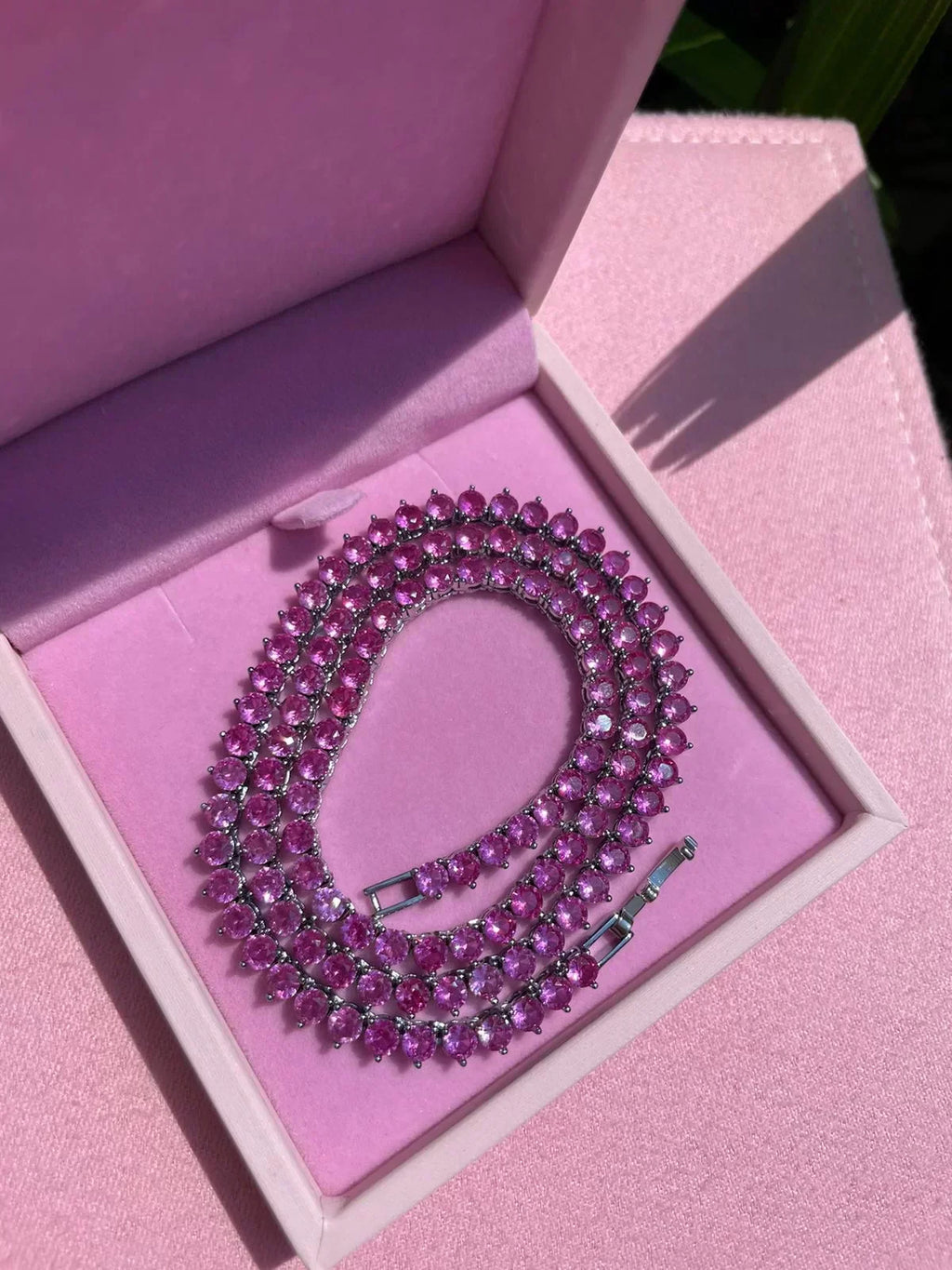 Riviera 3 Pontas com Zircônia Pink 50cm ( Fecho Joia ) em Prata 925 de Ródio Branco