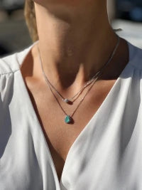 Colar em prata 925 com banho de ródio branco, pingente móvel de gota com borda cravejada e pedra central zircônia colombiana, corrente veneziana.