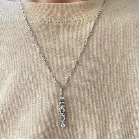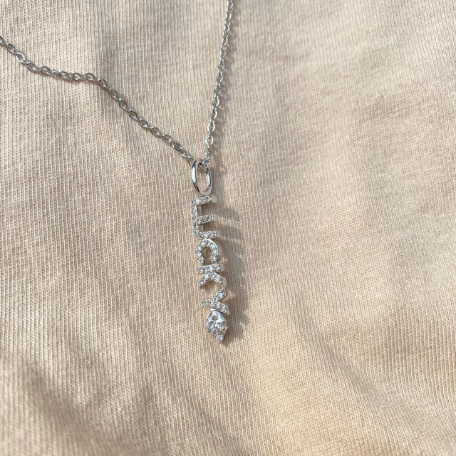 Colar com pingente de palavra lucky cravejado com zircônia.
