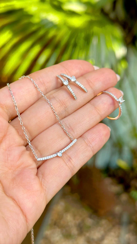 O colar corrente elos, com pingente reto com mini coração em zircônias brancas é em prata 925 com banho de ródio branco é a escolha perfeita para compor visuais leves e românticos, possui 48 cm.