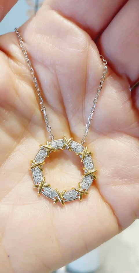 Jóia em prata 925 com banho de ródio, colar mini elos com pingente luxuoso cravejado em zircônias especiais, detalhes minimalistas em formato x no banho ouro 18k. Acessório inspiração alta joalheria, design moderno e sofisticado. Medida do colar: 40 cm + 5 cm, pingente: 2,00 cm.