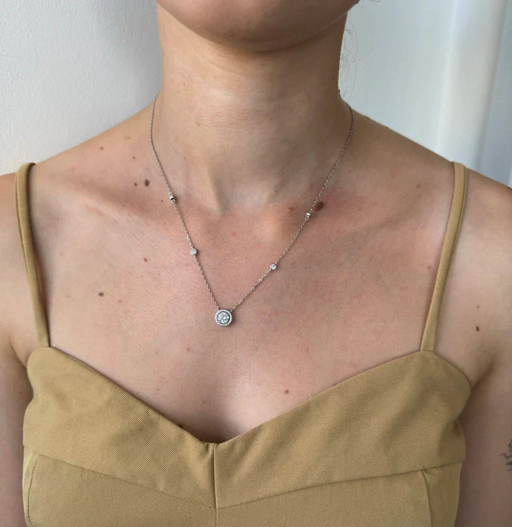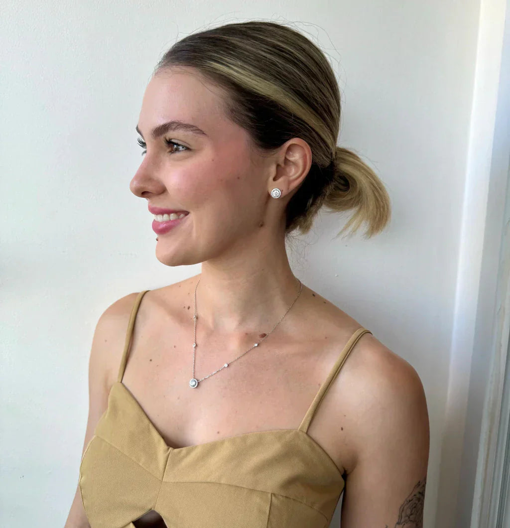 Conjunto de colar e brinco no formato redondo, com corrente modelo Tiffany (Zircônias na corrente).