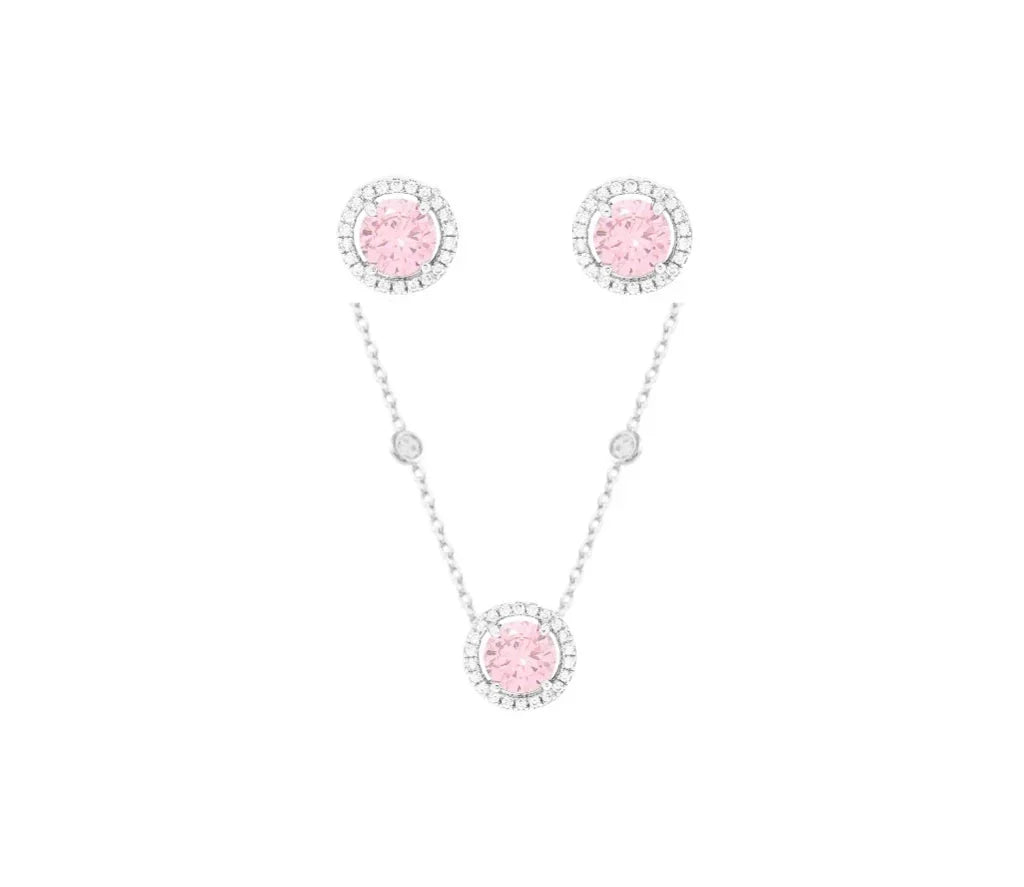 Conjunto de colar e brinco no formato redondo, com corrente modelo Tiffany (Zircônias na corrente).