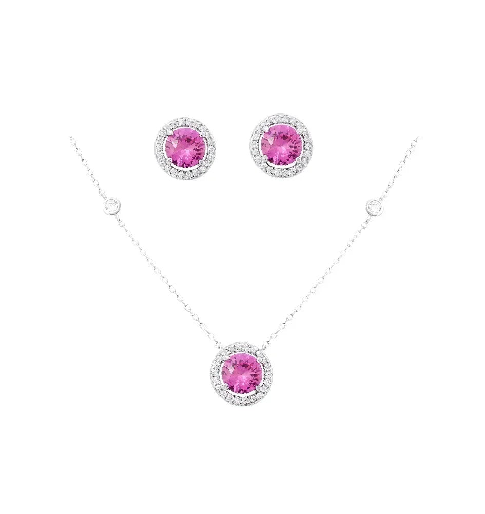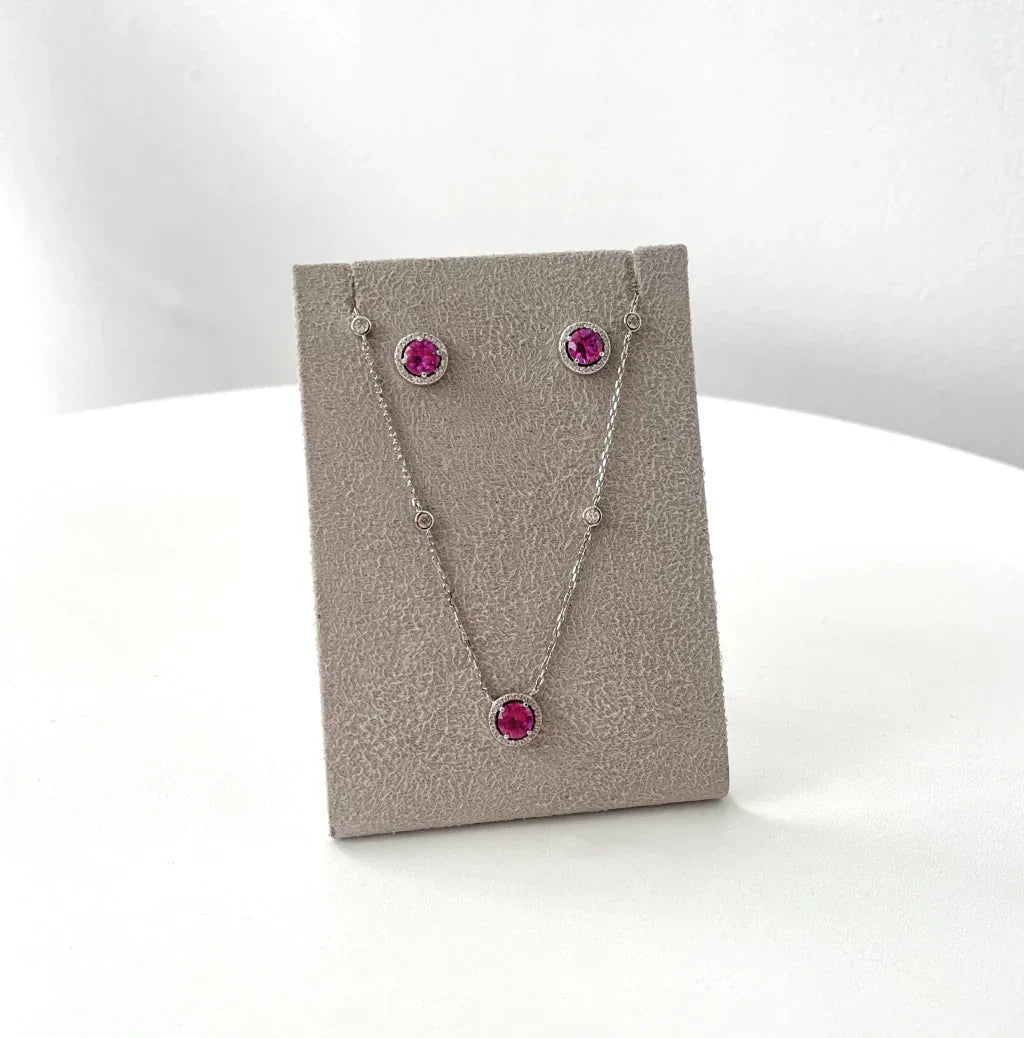 Conjunto de colar e brinco no formato redondo, com corrente modelo Tiffany (Zircônias na corrente).