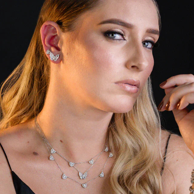 Conjunto borboleta, prata 925. Micro cravejado com zircônias. Corrente de 40 a 45 cm de comprimento!