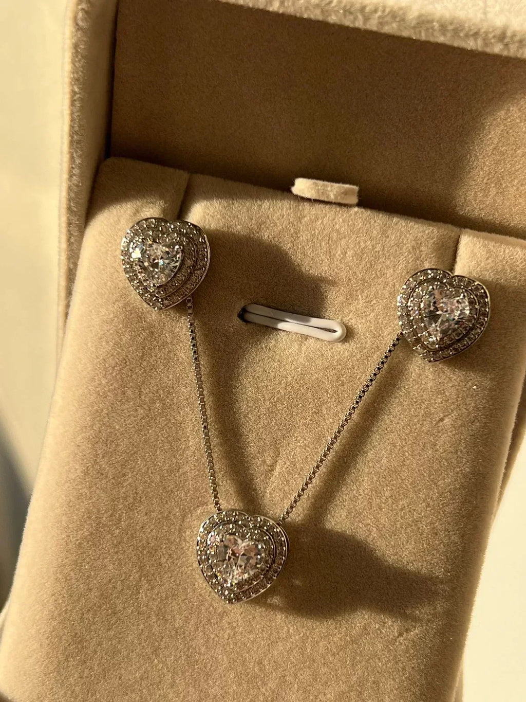 Conjunto Coração Com Zircônia Cristal em Prata 925 Banho de Ródio Branco