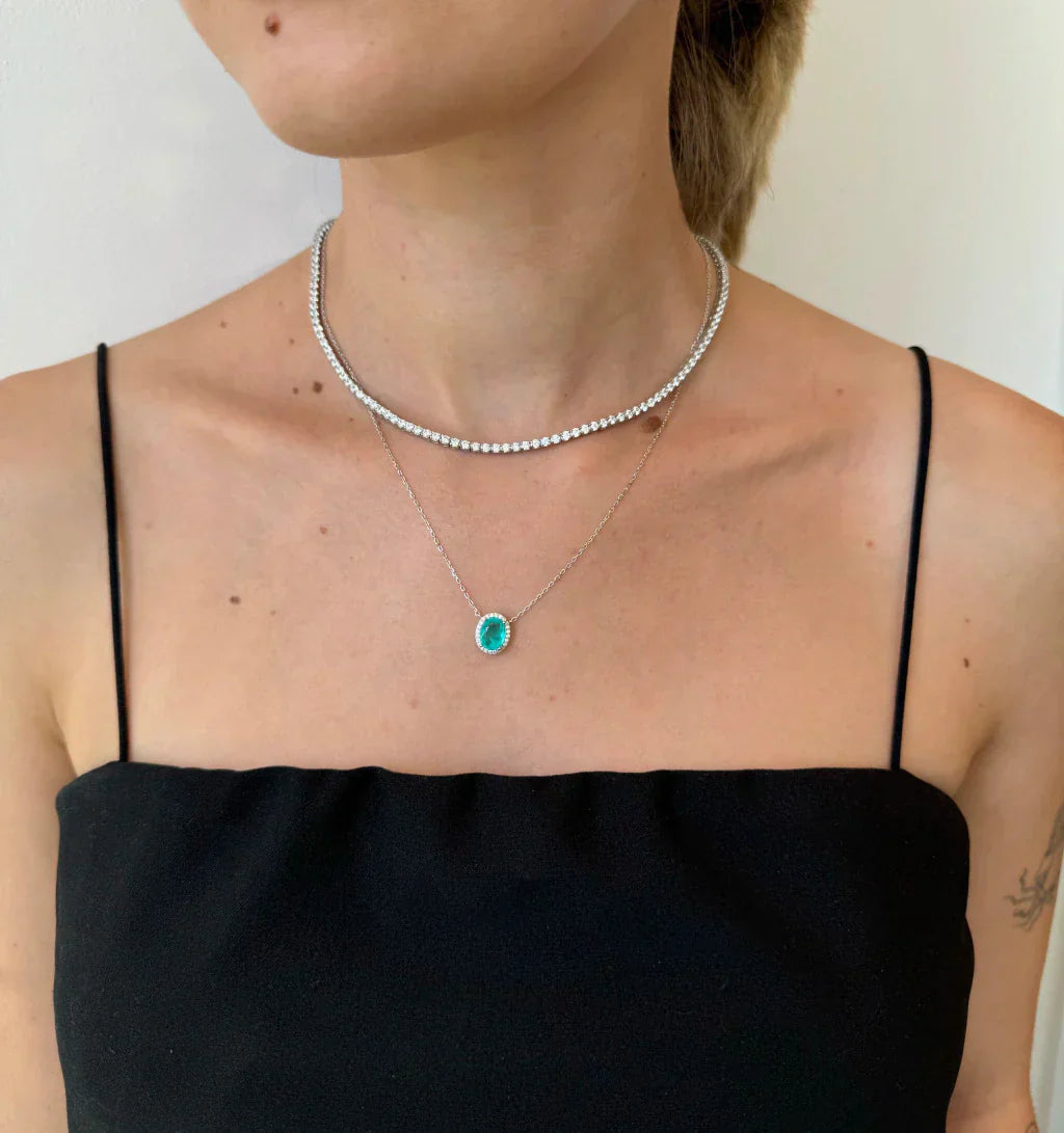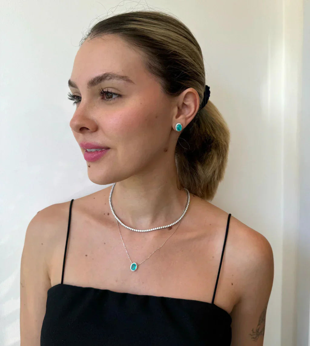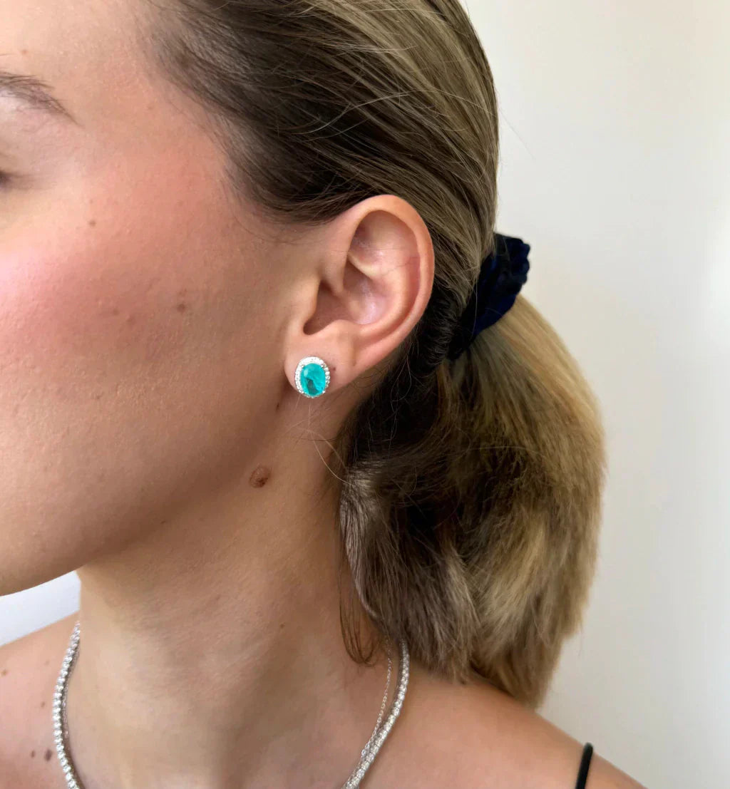 Conjunto em formato oval, tamanho médio, cravejado na micro zircônia.