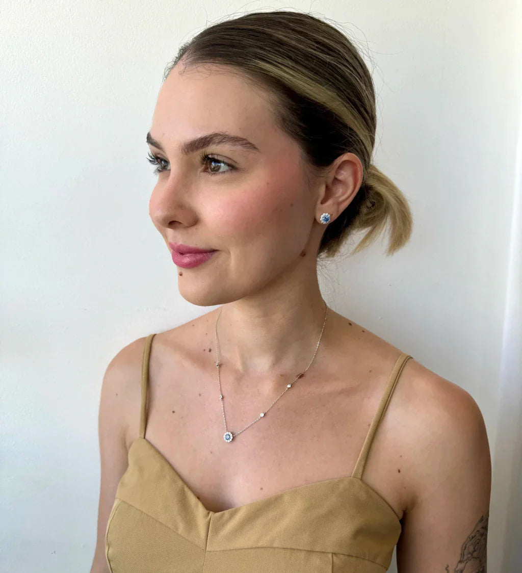 Conjunto Ponto de Luz cravejado - Corrente Tiffany - Tanzanita