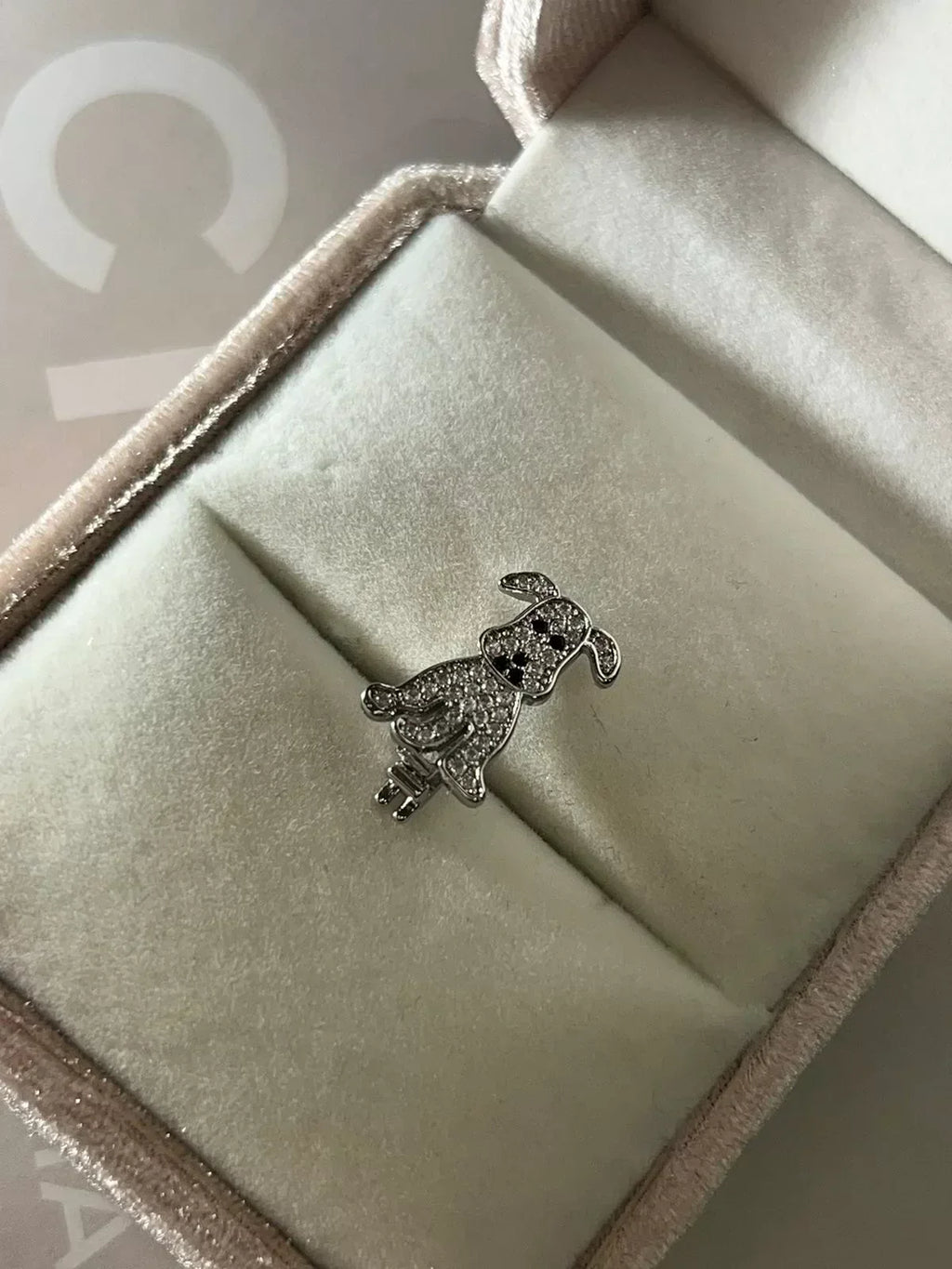 Pingente Cachorro com Zircônia Cristal (Para Pulseira ) em Prata 925 Banho de Ródio Branco