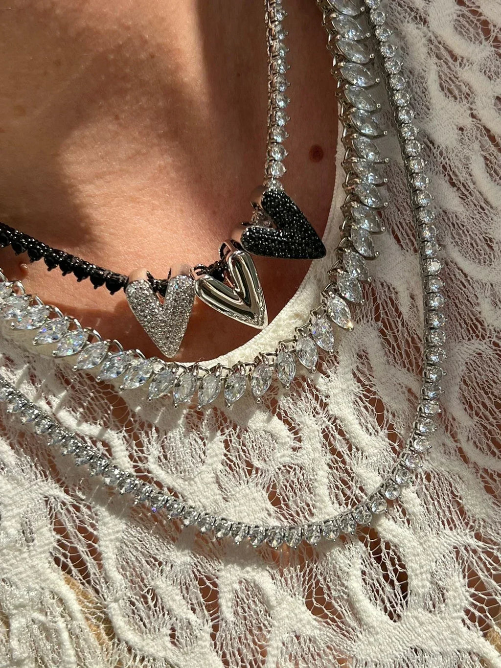 Pingente Coração com Zircônia Black em Prata 925 Banho de Ródio Branco