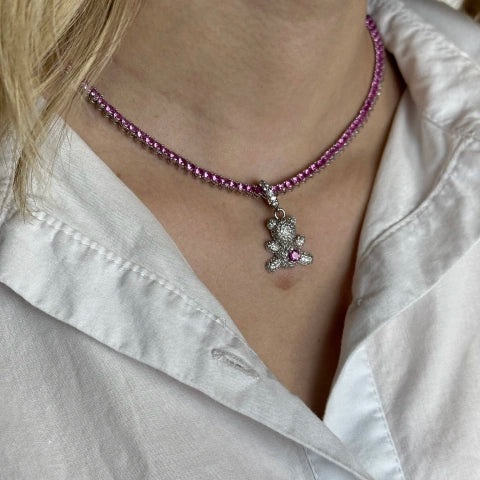 Pingente semijoia banhado a ouro 18k/ Ródio Branco cravejado em microzircônias brancas e pedra central.