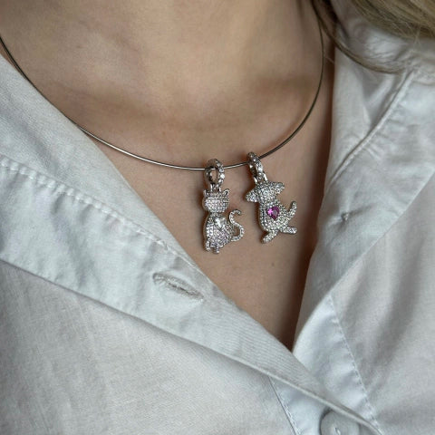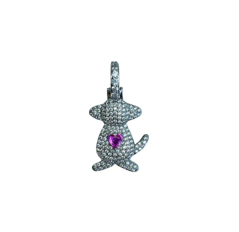 Pingente Cat e Dog cravejado banhado em Ródio Branco.