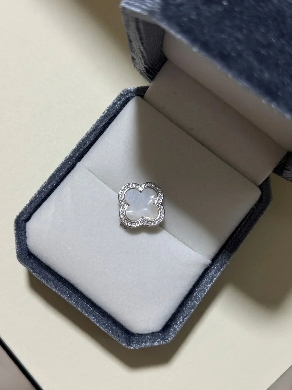 Pingente Trevo com Madrepérola em Prata 925 Banho de Ródio Branco