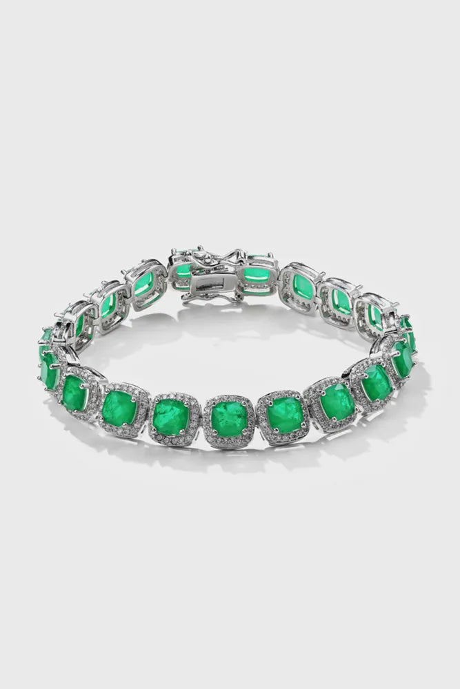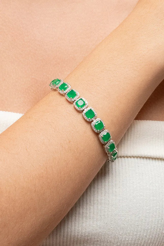 Descubra A Elegância Deslumbrante De Nossa Pulseira Riviera, Destacada Por Zircônias Na Cor Esmeralda E Meticulosamente Circundadas Por Micro Zircônias Brilhantes. Este Acessório Imponente É A Escolha Perfeita Para Elevar Seus Looks Em Ocasiões Festivas. Com Um Fecho Modelo Joia, Ela Promete Não Só Um Ajuste Seguro, Mas Também Um Conforto Excepcional. O Acabamento Impecável E O Brilho Intenso De Cada Pedra Refletem Um Padrão De Qualidade Superior, Tornando-A Uma Peça Essencial No Guarda-Roupa De Quem Aprecia Detalhes Sofisticados E Duradouros.