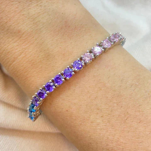 Pulseira riviera rainbow cravejada com zircônia de 4mm e com banho de ródio.