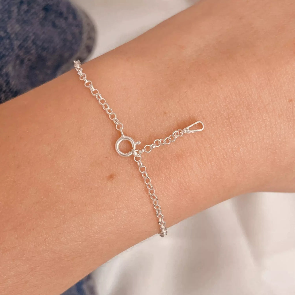Essa pulseira possui uma corrente do tipo elo português, que permite regular em qualquer elo da corrente seu tamanho, como na terceira foto.