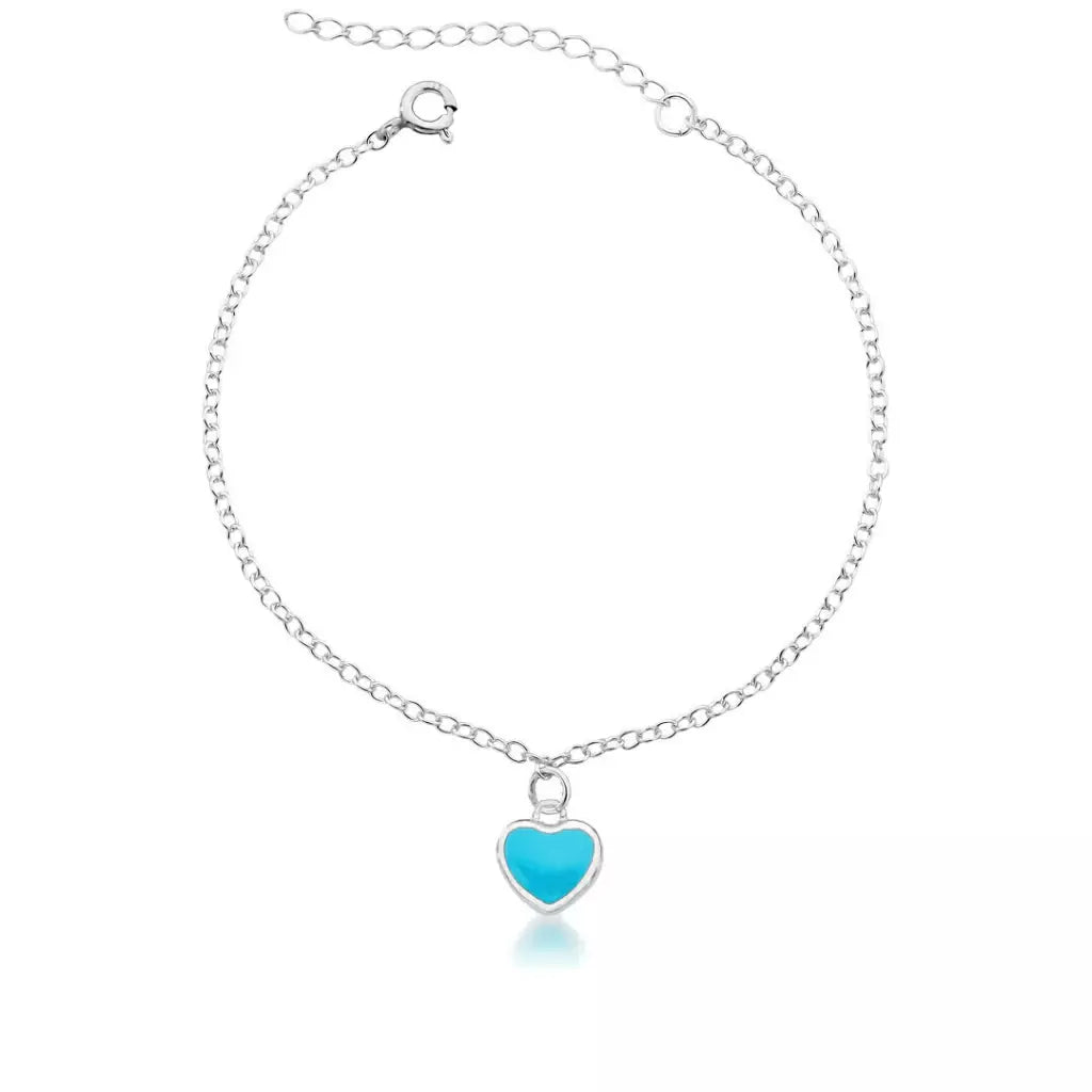 A Pulseira Coração Verde Água Pendente de Prata é a escolha certa para quem busca uma joia com toque de cor e significado. O pingente em formato de coração, esmaltado em verde água, traz um ar leve e romântico, enquanto a corrente regulável garante conforto no uso diário ou em composições mais elaboradas.