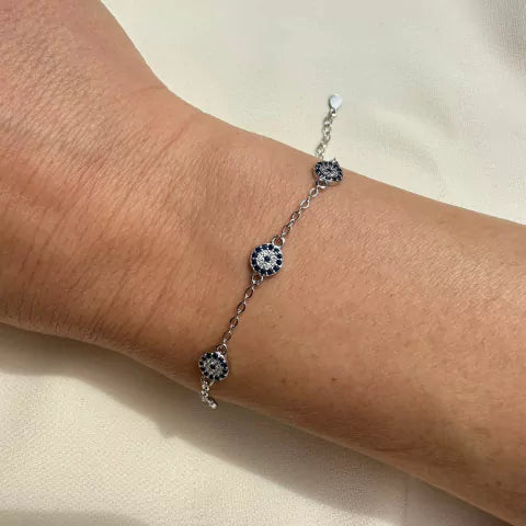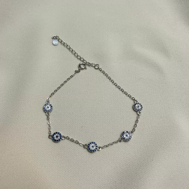 Pulseira em prata 925 com pingetes de olho grego cravejado com micro zircônia.