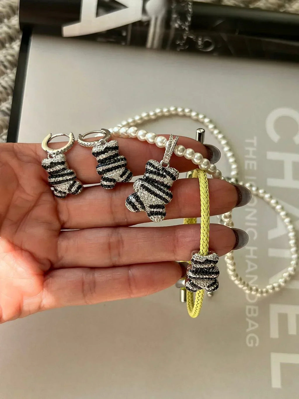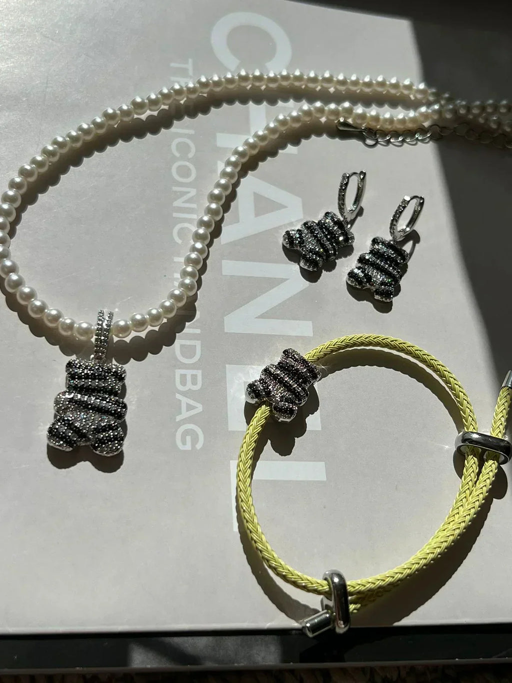 Pulseira Inox Gravatinha Colorida Verde Lima com Ted Zircônia Cristal em Banho de Ródio Branco