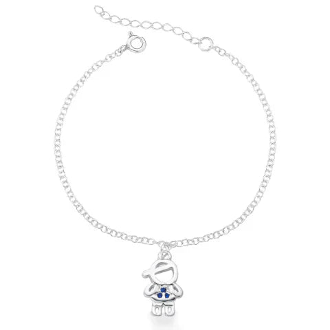 Pulseira Menino Cravejado de Prata 925, esse produto é feito com um corrente elo portugues 040, vem com Pingente Menino, que é composto por prata liso com cravação no corpo;