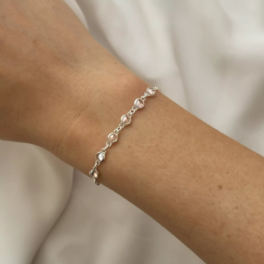 A Pulseira Ponto de Luz Elos de Prata une o charme dos elos delicados ao brilho sofisticado do ponto de luz central. Uma joia que transmite leveza, elegância e versatilidade, perfeita para realçar o pulso em qualquer ocasião. Ideal para quem busca uma peça moderna e atemporal para o dia a dia.