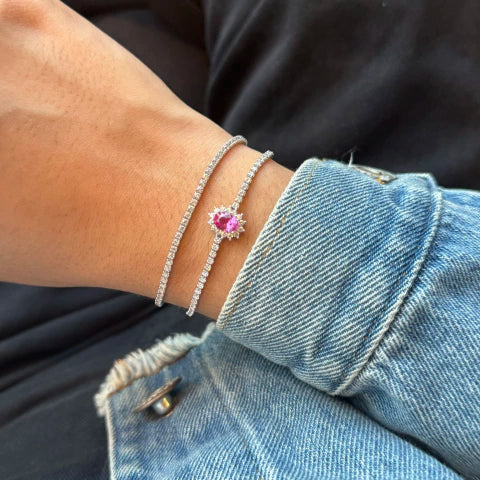 Pulseira Prata 925 cravejada em zircônias com pedra Àgata Rosa central.