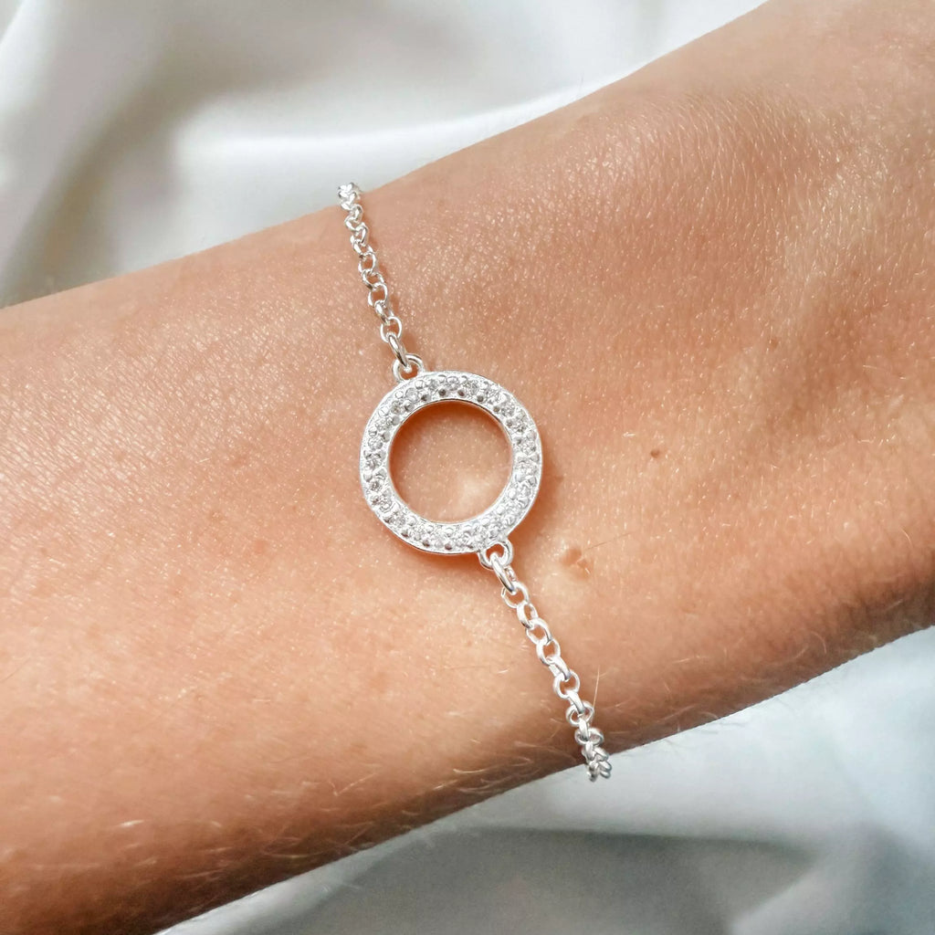 A Pulseira Redondo Cravejado é uma joia sofisticada e minimalista, perfeita para quem busca um acessório delicado e elegante. Seu design apresenta um círculo cravejado com zircônias brilhantes, que refletem a luz e adicionam um toque refinado ao visual.