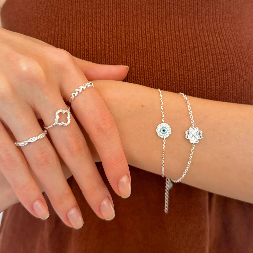 A Pulseira Trevo da Sorte de Prata é delicada e repleta de significado, ela traz brilho na medida certa e o simbolismo do trevo, conhecido por atrair boas energias e sorte. Uma peça versátil, perfeita para o dia a dia ou para compor combinações elegantes com outras joias.