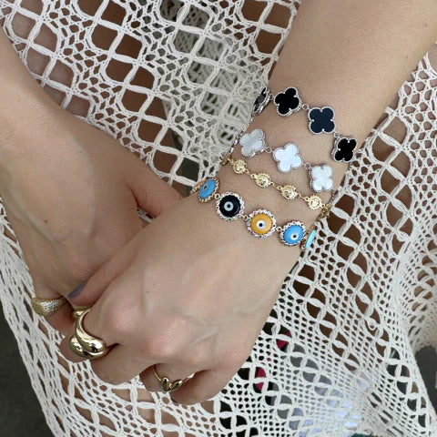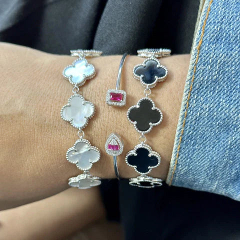 Pulseira em prata 925 com pingentes em forma de trevo.