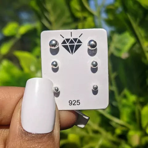 Trio Bolinha de Prata 925, vem com 3 peças lindas e com acabamento perfeito e com 0,7mm de espessura, o modelo tamanho P apresenta 2,5 milímetros, o modelo M apresenta 3 milímetros e o modelo tamanho G apresenta 4 milímetros, vem com o fecho de tarracha, além de ser feito com um material de excelente qualidade e durabilidade.