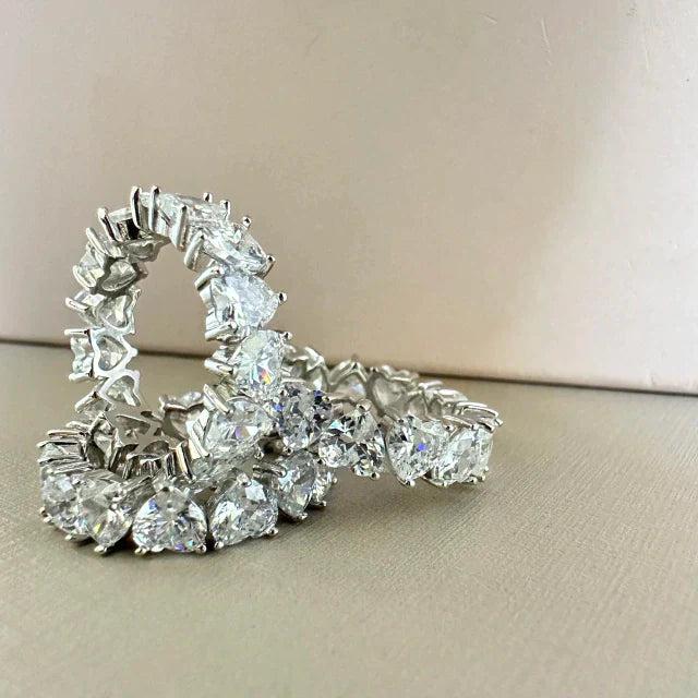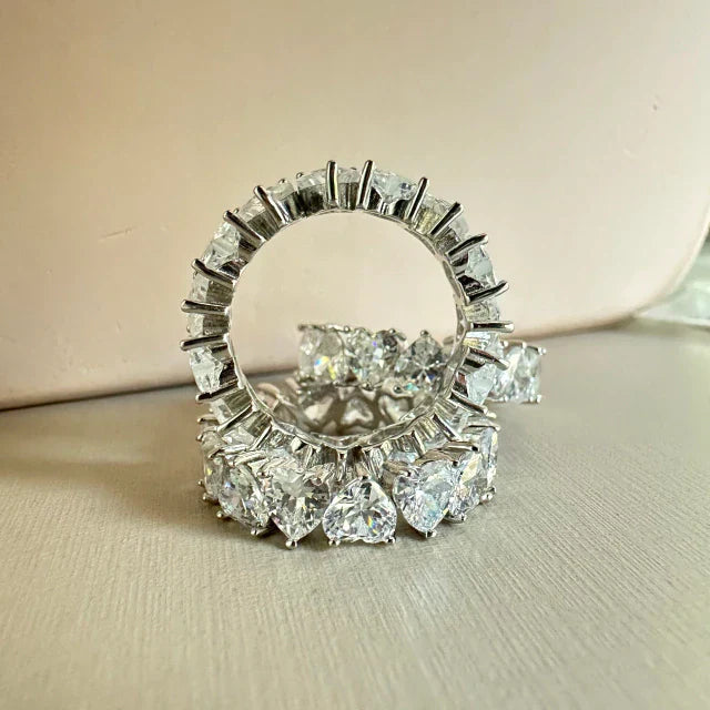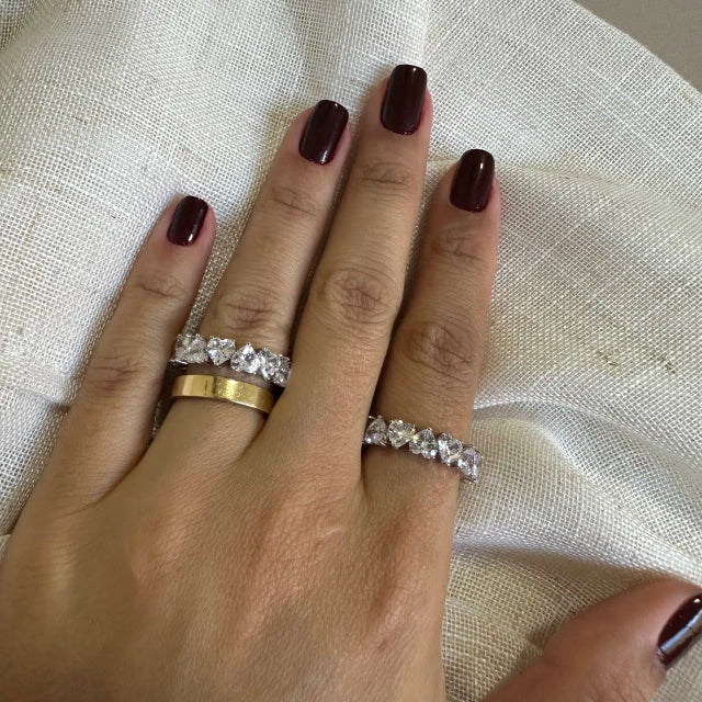 Anel inteiro de zircônias com formato coração! Prata 925 com banho de ródio branco. Charmosos e estilosos, com um brilho inigualável.